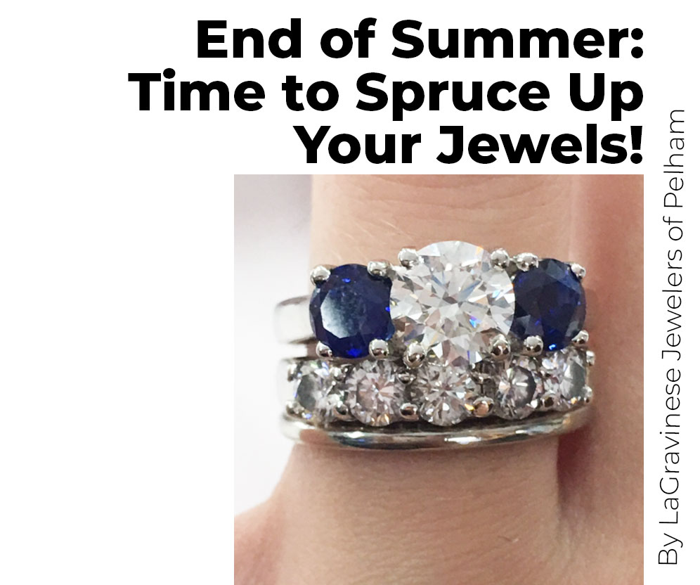 Summer is coming to an end, and as much fun as it was, it takes a toll on our bling. Sunshine, chlorine, sand, humidity, sunscreens, sweat, and many other things that our more active summer lifestyles entail can make our jewelry show wear, dirt, and damage faster. All of this can also risk the security of our pieces as well. This is a great time to stop by your jeweler and have your pieces checked and cleaned.